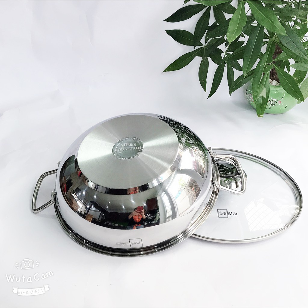 Nồi lẩu xào 3 đáy từ cao cấp Fivestar 32cm nắp kính , tặng 2 vá canh