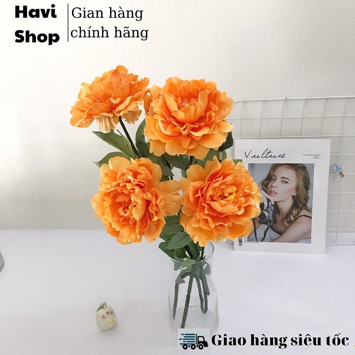Nhà cửa & Đời sống > Trang trí nhà cửa > Hoa trang trí || Hoa giả - Hoa Mẫu Đơn Havi 70cm cành 2 bông to 1 nụ nhỏ trang trí đẹp, giống thậtCòn hàng