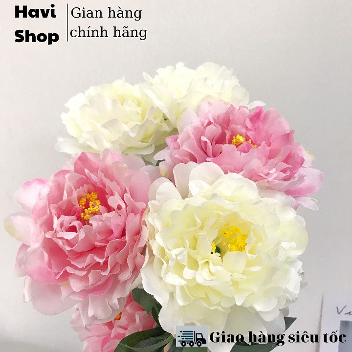 Hoa giả - Hoa Mẫu Đơn Havi 70cm cành 2 bông to 1 nụ nhỏ trang trí đẹp, giống thật
