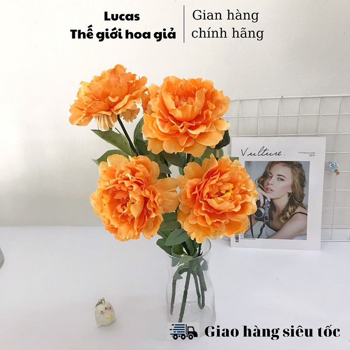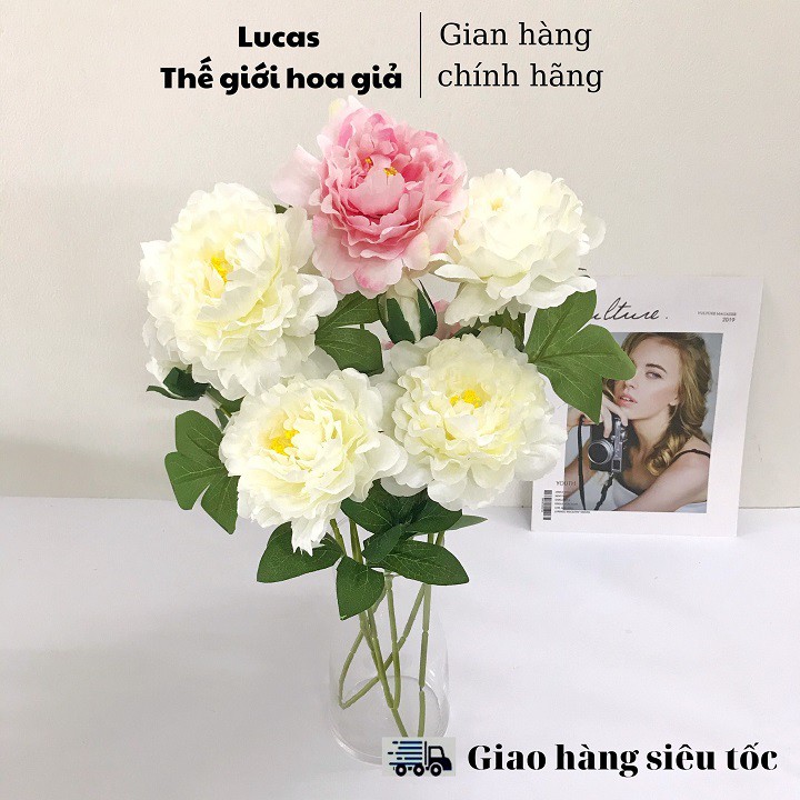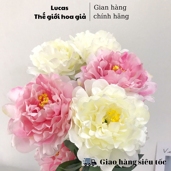Nhà cửa & Đời sống > Trang trí nhà cửa > Hoa trang trí || Hoa giả - Hoa mẫu đơn Lucas 70cm 1 cành 2 bông to 1 nụ trang trí đep, giống thậtCòn hàng