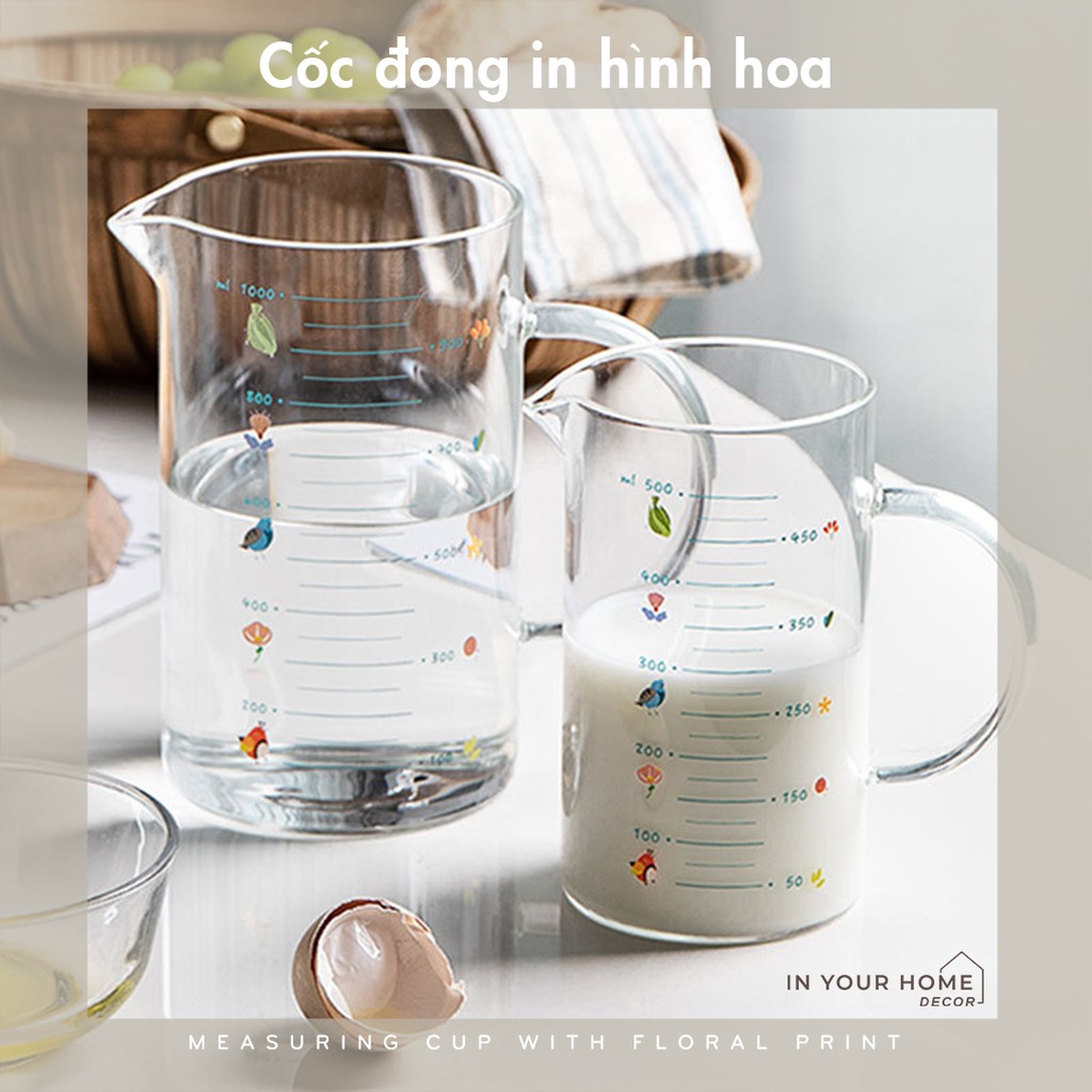 Cốc đong thủy tinh 1L làm bánh chia vạch, ly đong thủy tinh thí nghiệm 500ml 1L