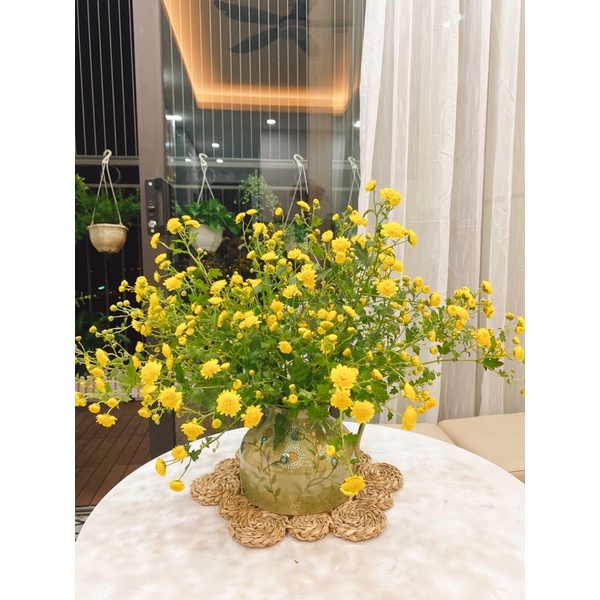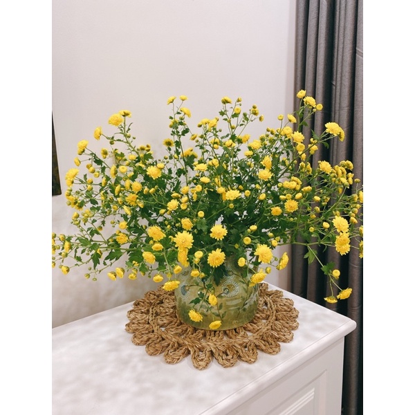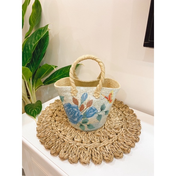 Thảm cói móc xích phối màu ngô trắng chuẩn Vintage, hàng đan kĩ dày dặnkích thước: D33cm