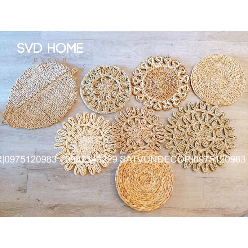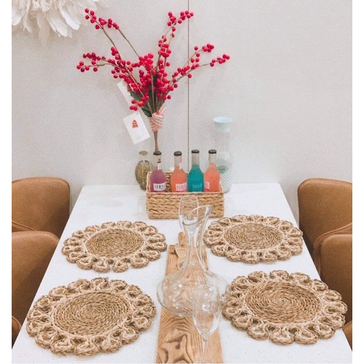 Nhà cửa & Đời sống > Bộ đồ bàn ăn > Khay, tấm lót bàn ăn || (Xưởng SX)-Thảm Cói móc xích phối màu Vintage dùng để decor bàn ăn, treo tườngCòn hàng