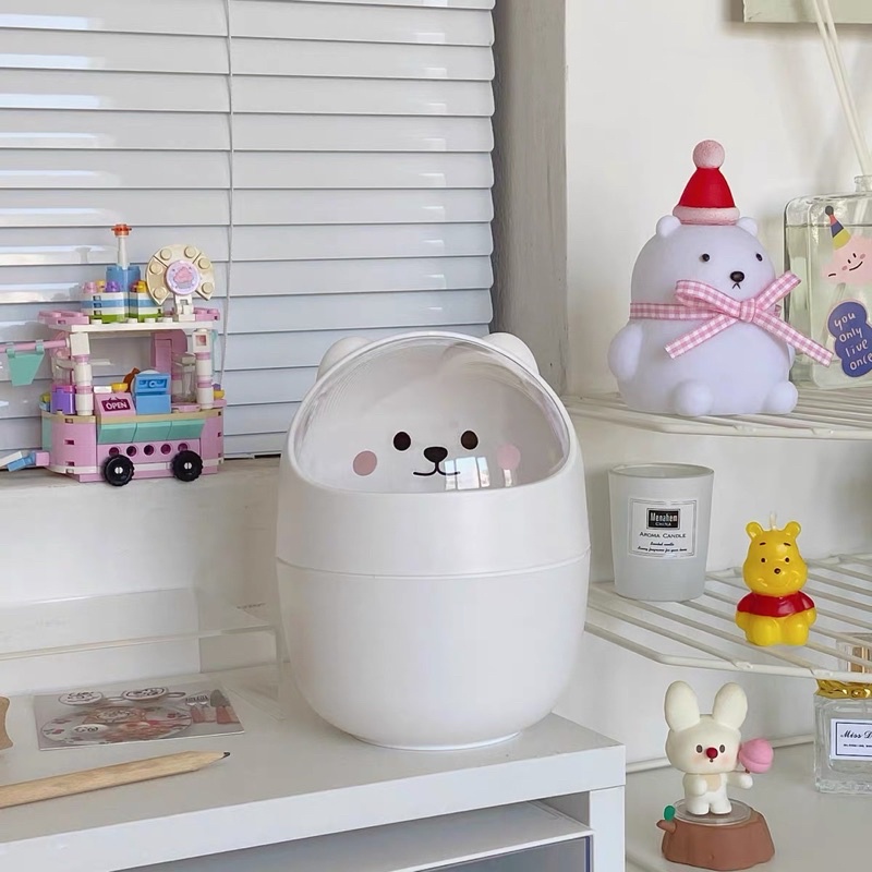 Nhà cửa & Đời sống > Dụng cụ chăm sóc nhà cửa > Thùng rác || Thùng rác mini , hộp đựng bút cute để bàn hình gấu có nắp dùng decor bàn họcCòn hàng