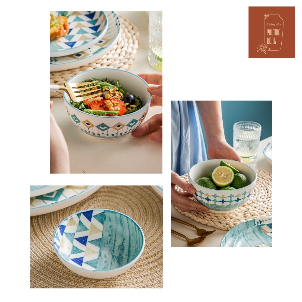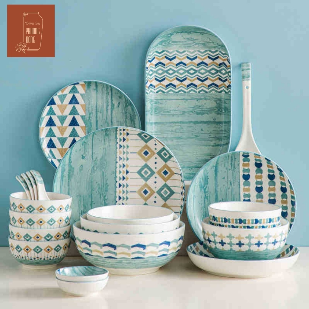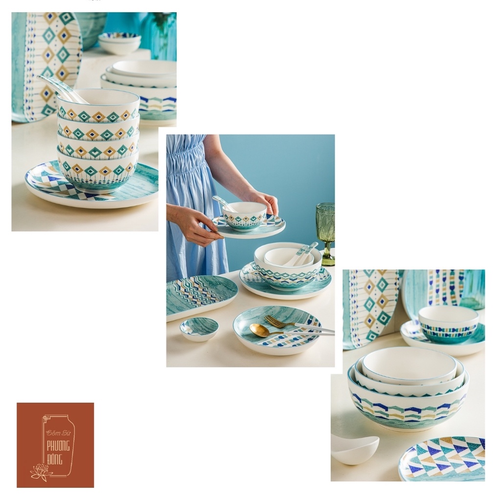 BỘ SẢN PHẨM BÁT ĐĨA CAO CẤP XANH ĐẠI DƯƠNG PHONG CÁCH BẮC ÂU lấy cảm hứng từ phong cách hiện đại, trẻ trung phương Tây, được sản xuất và cung cấp từ phương Đông =)). Chất liệu gốm sứ tráng men cao cấp, không chứa chì, không độc hại, thân thiện với môi trường, kiểu dáng đa dạng, họa tiết sắc nét, màu sắc phù hợp với những gia đình yêu thích sự cổ điển, tinh tế. Sản phẩm sử dụng an toàn với lò vi sóng, lò nướng, máy rửa bát.
