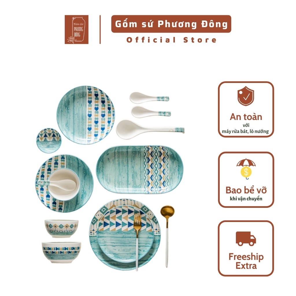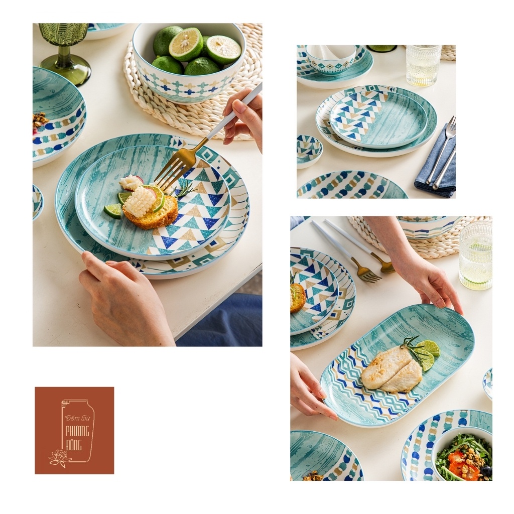 Bộ bát đĩa xanh đại dương phong cách Bắc Âu cao cấp được set thành 2 set phù hợp với nhu cầu từng gia đình: