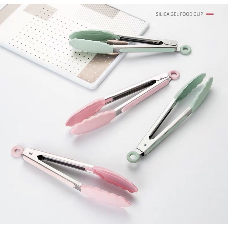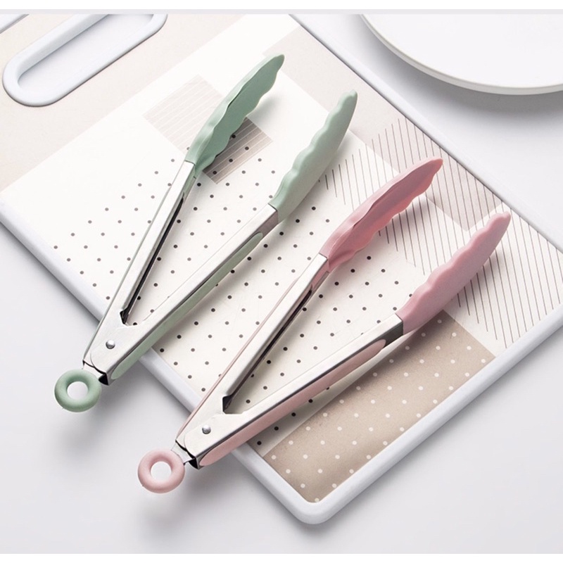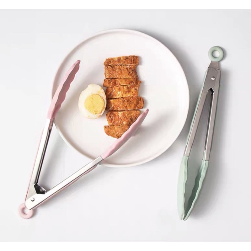 Kẹp gắp thức ăn silicone thép không gỉ nướng thịt chế biến dụng cụ gắp đồ nướng BBQ