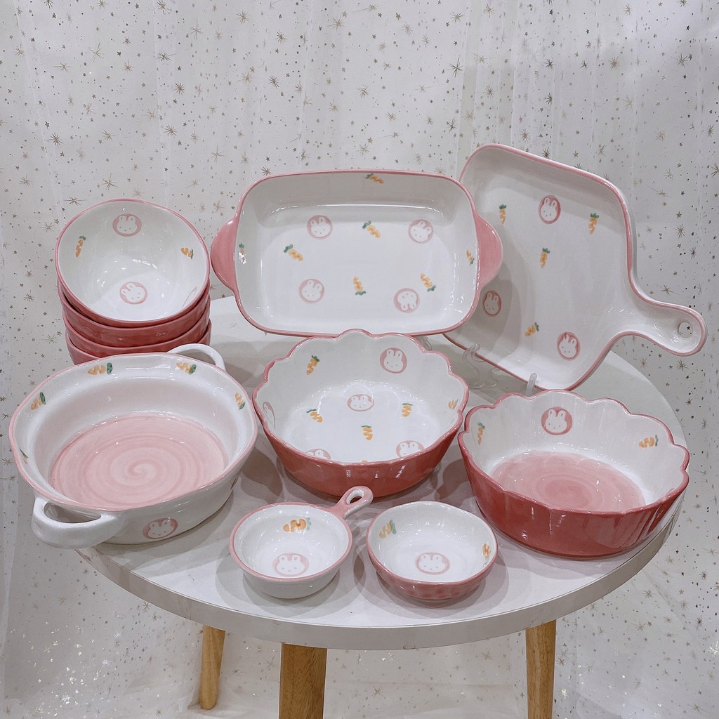 Nhà cửa & Đời sống > Bộ đồ bàn ăn > Tô || Bộ bát đĩa gốm sứ cao cấp bộ thỏ hồng 11 món siêu đáng yêuCòn hàng