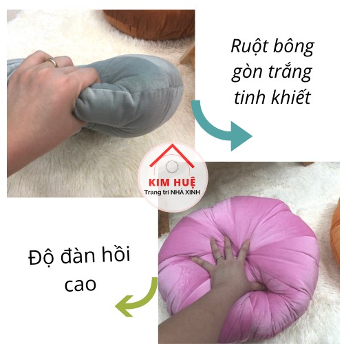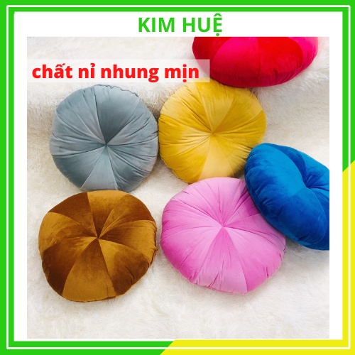 Đệm ngồi bệt tròn vải nỉ nhung cao cấp hình bí ngô - gối tựa bông trắng cực êm