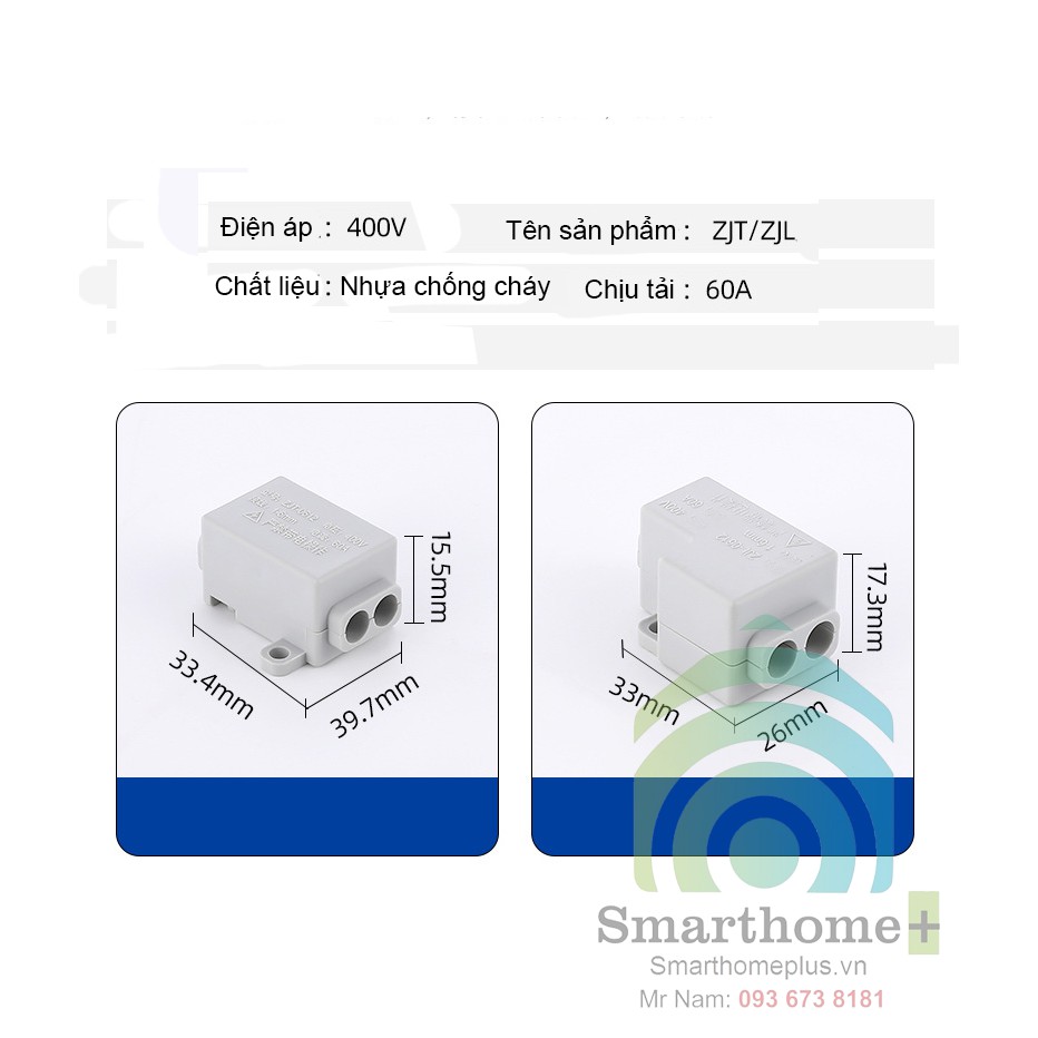 Bộ 2 Cút Nối Chia Dây Điện Đôi 1 Ra 2 ZJT-06Là thiết bị sử dụng để chia nhỏ từ 1 dây to ra 2 dây nhỏ sử dụng cho điện 1 pha 2 dây gồm 2 cực nóng và lạnh, tiện lợi cho việc đấu nối, mối nối gọn gàng an toàn cách điện tuyệt đối.