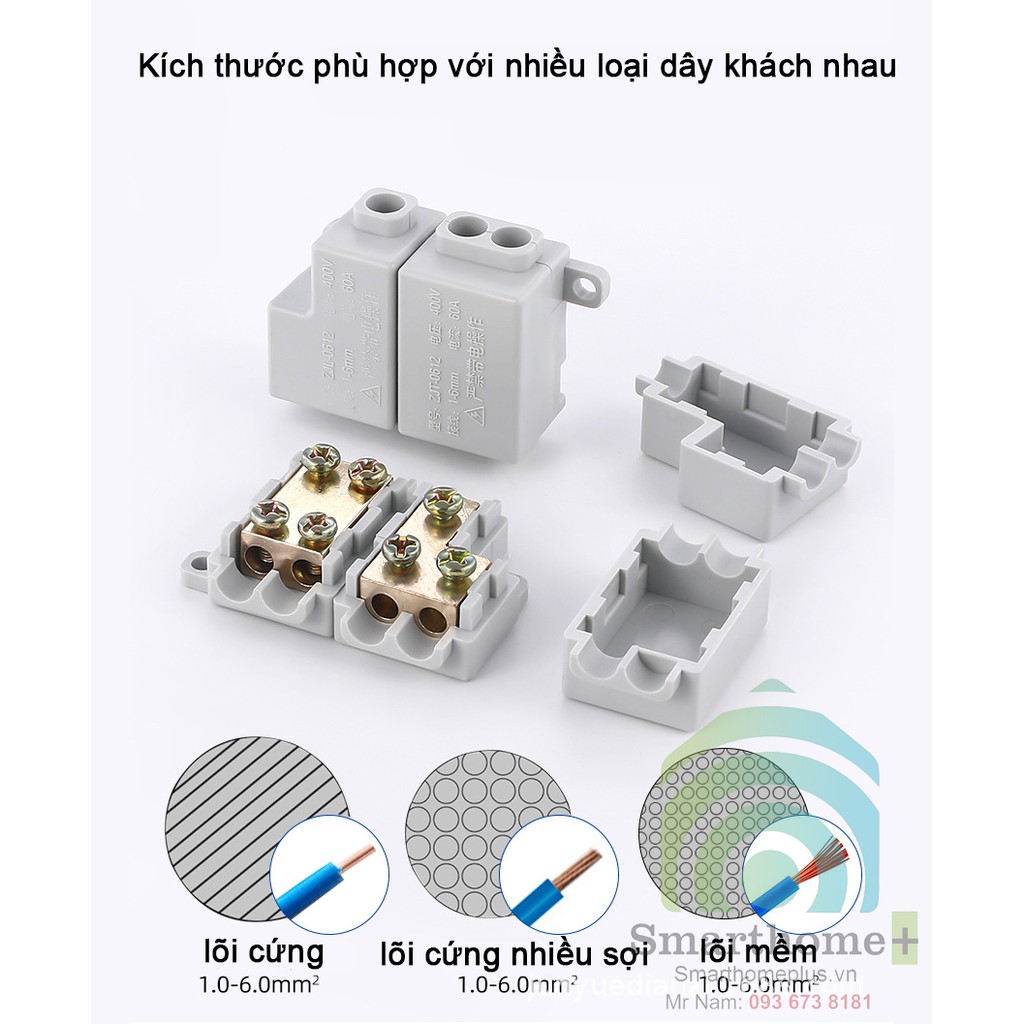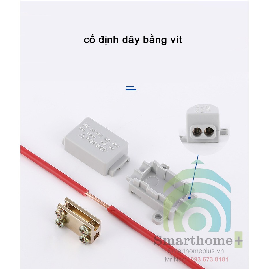 Công suất chịu tải của Cầu Đấu Chia Dây Điện Đôi 1 Ra ZJT-06 lớn lên đến 60A.