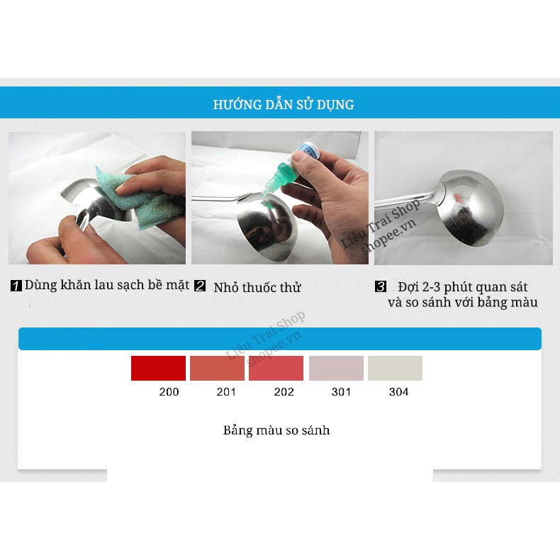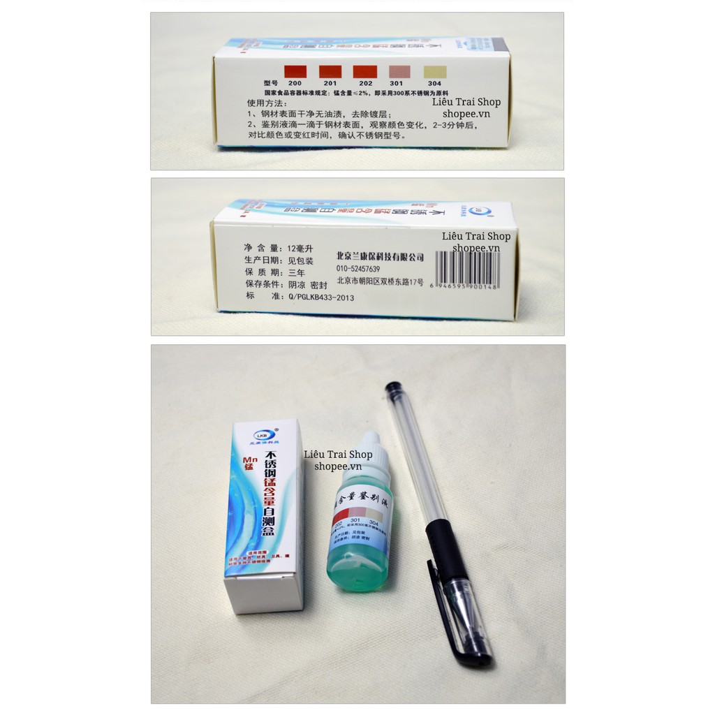 Lưu ý: Từ tháng 11/2020 nhà sản xuất không dán tem trên vỏ lọ dung dịch mà để trơn.Test phân biệt inox 304 201 200