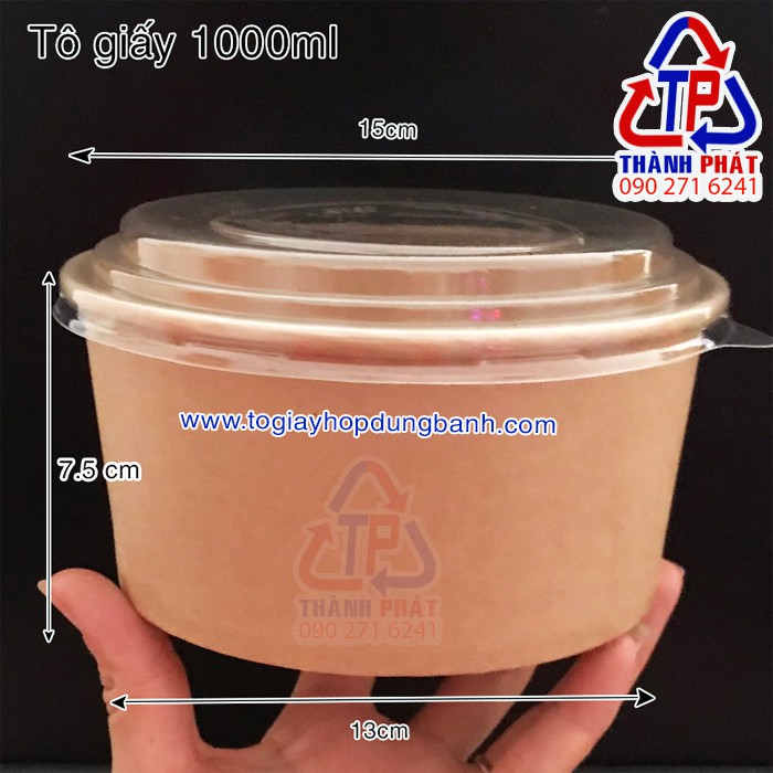 Tô kraft 1000ml - tô giấy đựng bánh bông lan 1000ml - Tô giấy kraft 1000mlTô giấy nắp trong