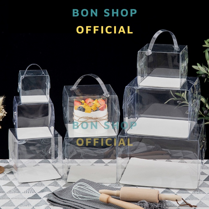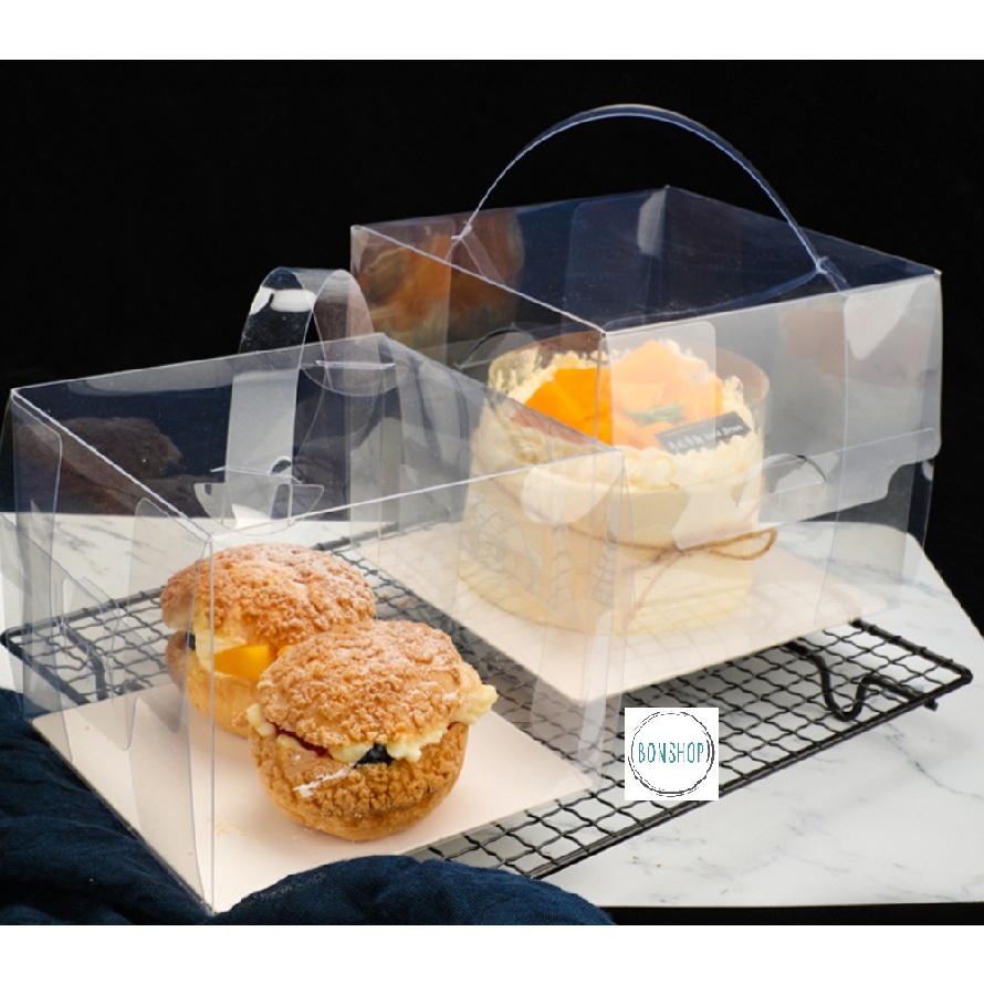Nhà cửa & Đời sống > Dụng cụ nhà bếp > Dụng cụ nướng & trang trí bánh || [HBK016] Hộp mica vuông có quai xách trong suốt đựng bánh kèm đếCòn hàng
