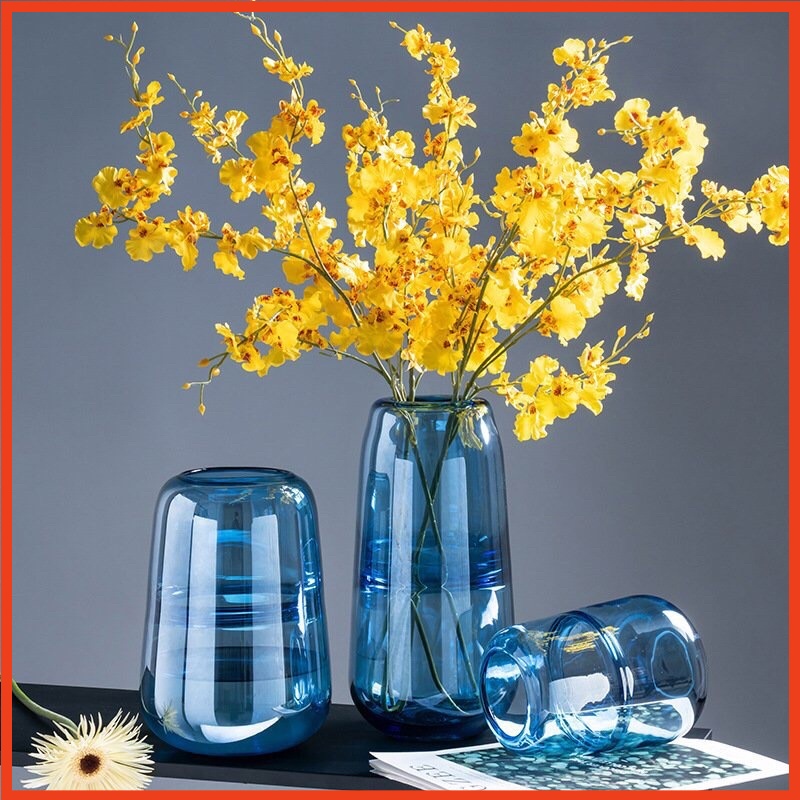 Lọ hoa thuỷ tinh Bình hoa decor màu xanh ngọc phong cách Bắc Âu