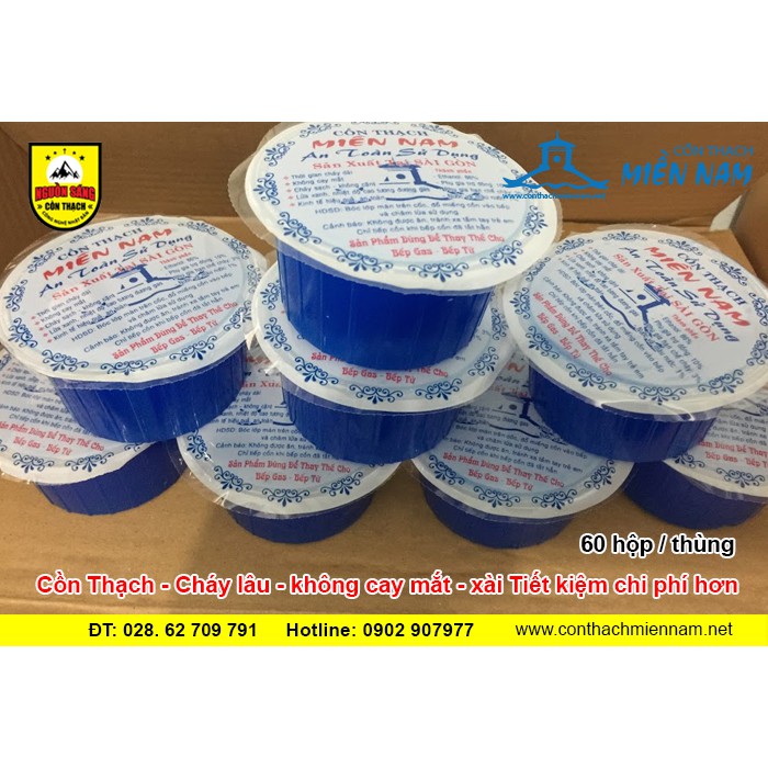 - Cồn Thạch Miền Nam là dòng sản phẩm Cồn Thạch uy tín chất lượng. Cồn nhiệt lượng cao, giúp nấu mau chín thức ăn, Cồn không cay mắt, cháy lâu tàn.