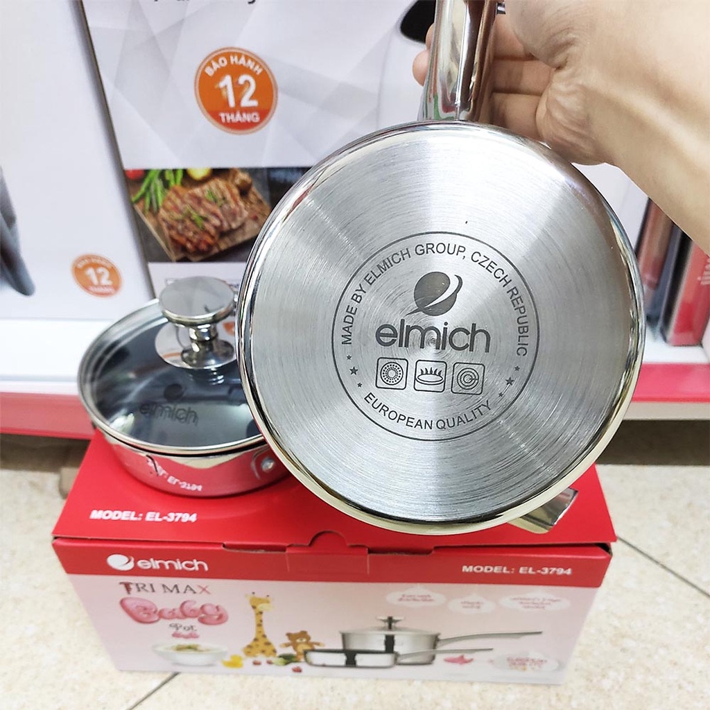 SET 1 QUÁNH 1 CHẢO INOX CAO CẤP ELMICH TRIMAX BABY EL 3794Cấu tạo 2 lớp thân đáy liền bắt nhiệt nhanh, tỏa nhiệt đều