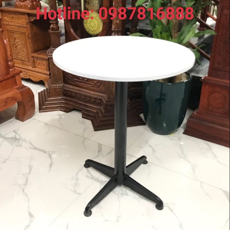Kích thước: Mặt bàn rộng 60cm,dày 18mm. Cao 73cm Bàn tròn cafe eames chân trụ sơn tĩnh điện màu đen trắng chắc chắn bền đẹpChất liệu: Mặt bàn sản xuất từ gỗ MDF phủ melamin cao cấp chống xước chống nước bề mặt.