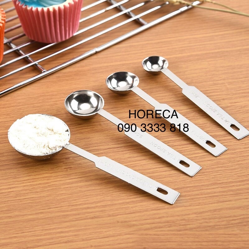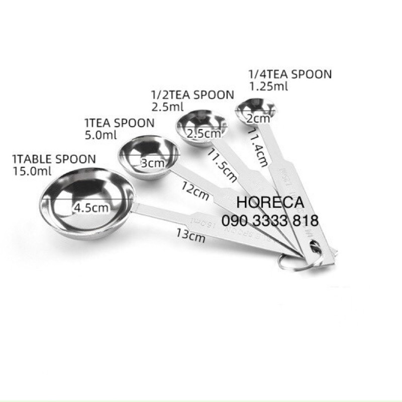 - Bộ muỗng đong gồm 4 muỗng (thìa) inox