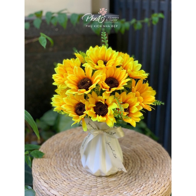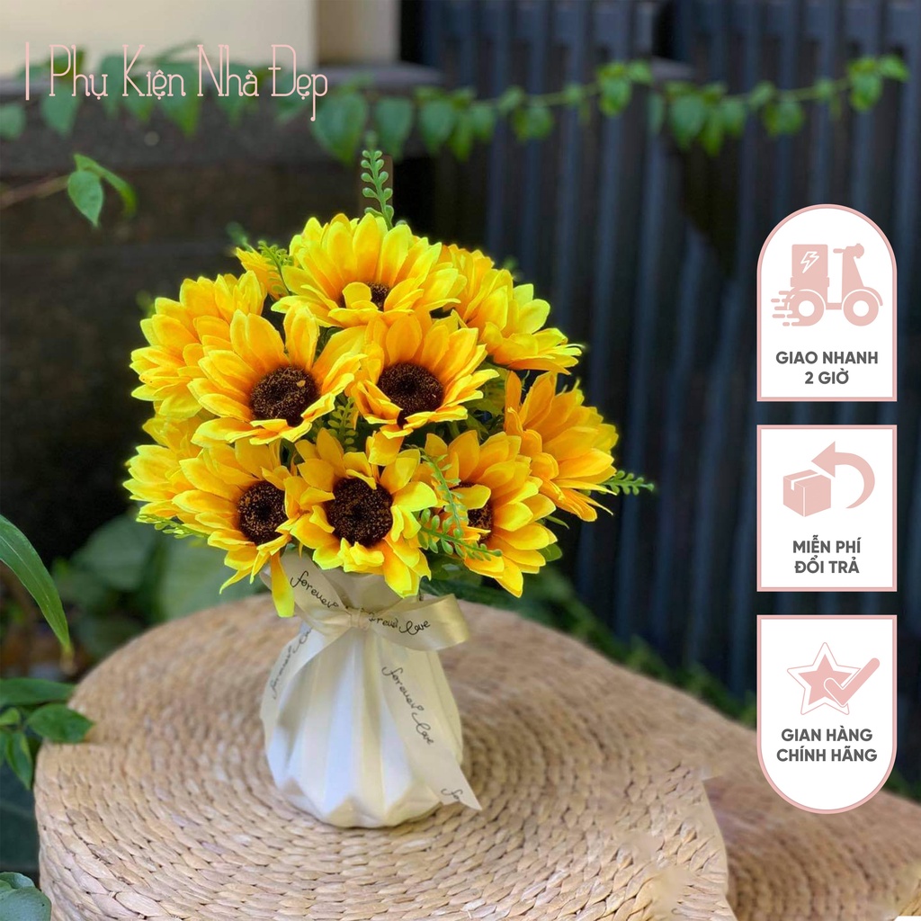 Nhà cửa & Đời sống > Trang trí nhà cửa > Hoa trang trí || Bình hoa giả hướng dương lụa để bàn đẹp PKND FLOWERS & DECORCòn hàng