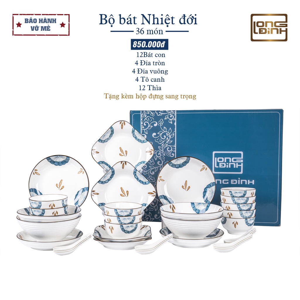 Bộ chén dĩa Nhiệt Đới 36 chi tiết nhà Long Đỉnh bao gồm: