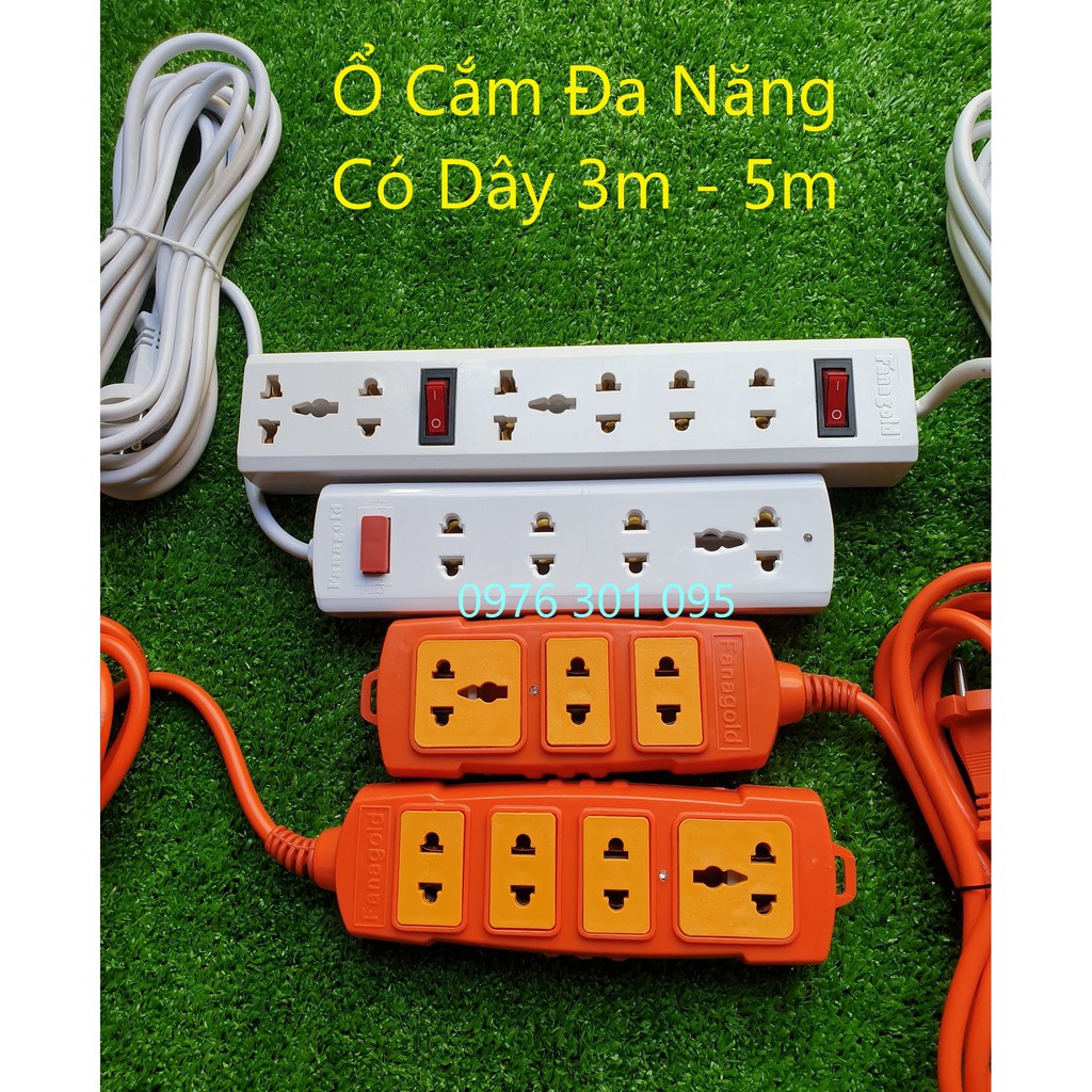 - Ổ cắm gồm 2 ổ cắm & 1 ổ đa năng, chiều dài dây dẫn 3met - 5met.