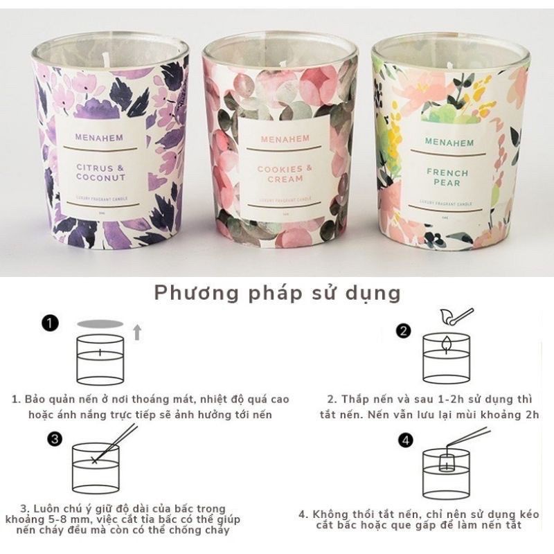 Nến Thơm Menahem Luxury Fragrant Candle với 3 mùi hương tạo cảm giác chân thực: