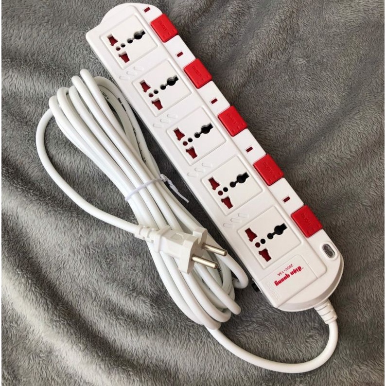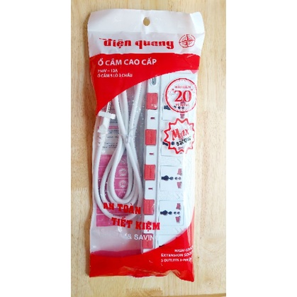 Thiết Bị Điện Gia Dụng > Mạch điện & Phụ tùng > Ổ cắm điện & Dây nối || Ổ cắm chịu tải 3200W 5 lỗ 3 chấu dây 2m, 5m Điện Quang ĐQ ESK 5W.SM750SLCòn hàng