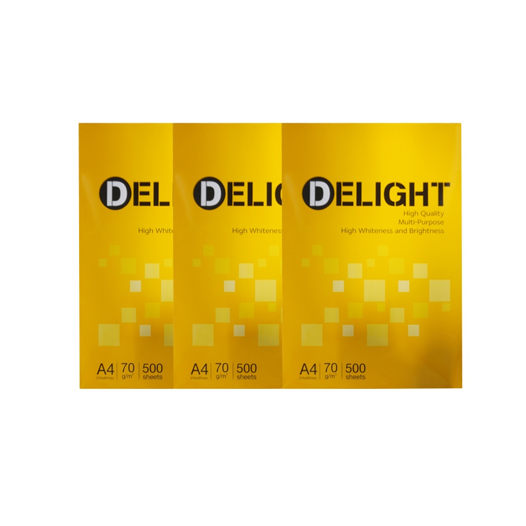 - Đây là loại giấy in photo khá phổ biến và được khách hàng ưa chuộng hiện nay vì định lượng và độ dày phù hợp với các dòng máy in hiện đại, sử dụng giấy A4 Delight bạn sẽ không phải lo lắng về chất lượng các bản in, kẹt giấy khi in hay nhòe chữ.