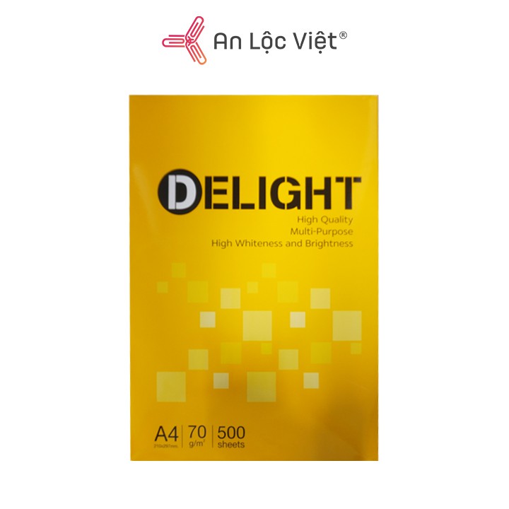- Giấy Delight A4 với định lượng 70gsm được sản xuất dựa trên công nghệ sản xuất giấy hiện đại nhất. Sản phẩm có xuất xứ từ Indonesia, được An Lộc Việt phân phối với giá rẻ và chất lượng tốt nhất.
