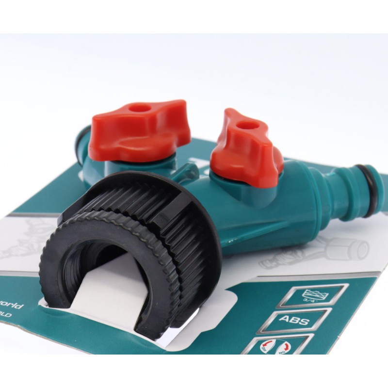 Đầu nối ống 2 chiều bằng nhựa 1 ",Với nút ngắt và nút xoay bằng nhựa.
