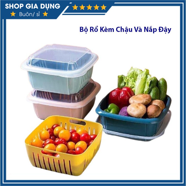 Nhà cửa & Đời sống > Dụng cụ chăm sóc nhà cửa > Chậu, xô & gáo nước || Bộ Rổ Kèm Chậu Đựng Rau Củ Quả Đa Năng Có Nắp Đậy - Hộp Đựng Thực Phẩm Trong Tủ LạnhCòn hàng
