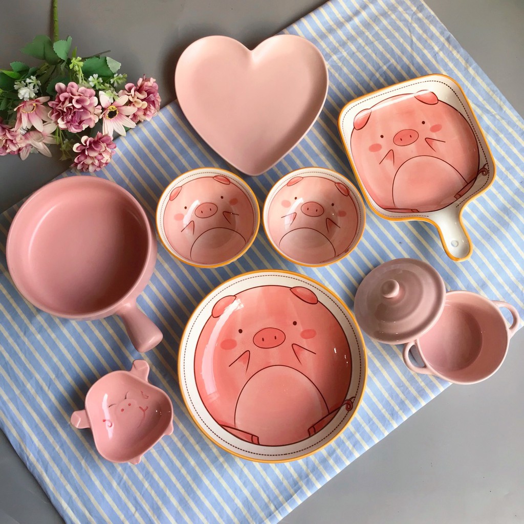 Nhà cửa & Đời sống > Bộ đồ bàn ăn > Tô || Bộ bát đĩa gốm sứ màu hồng sét 8 món siêu xinhoCòn hàng
