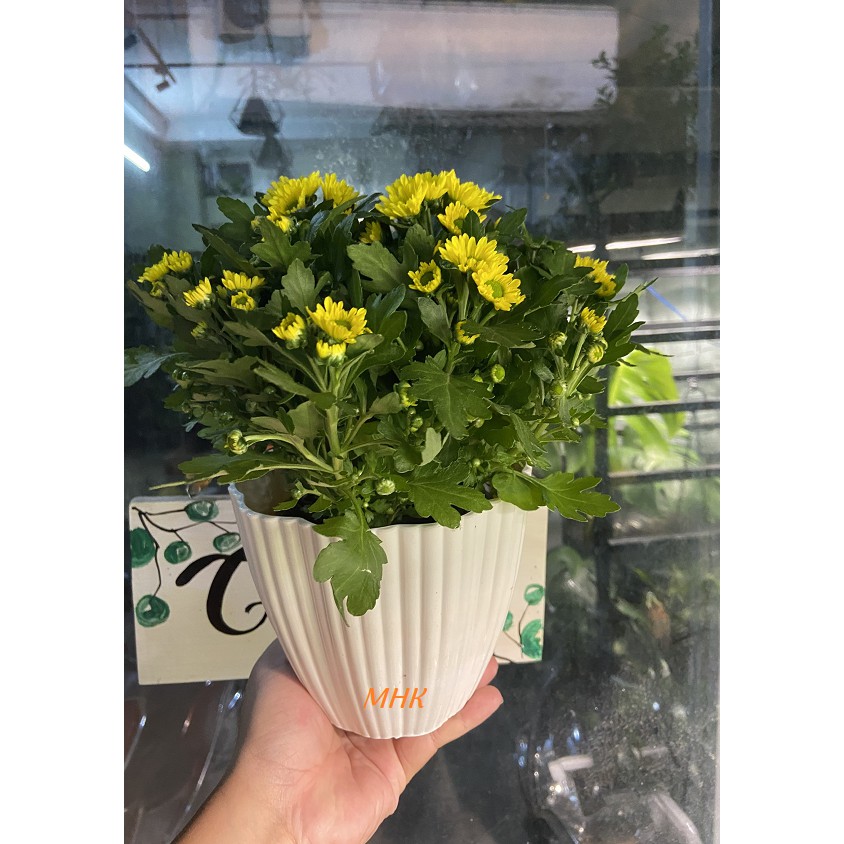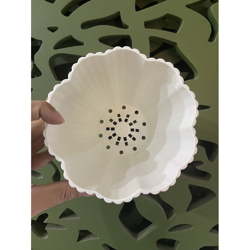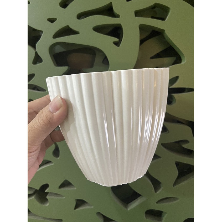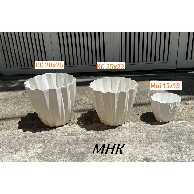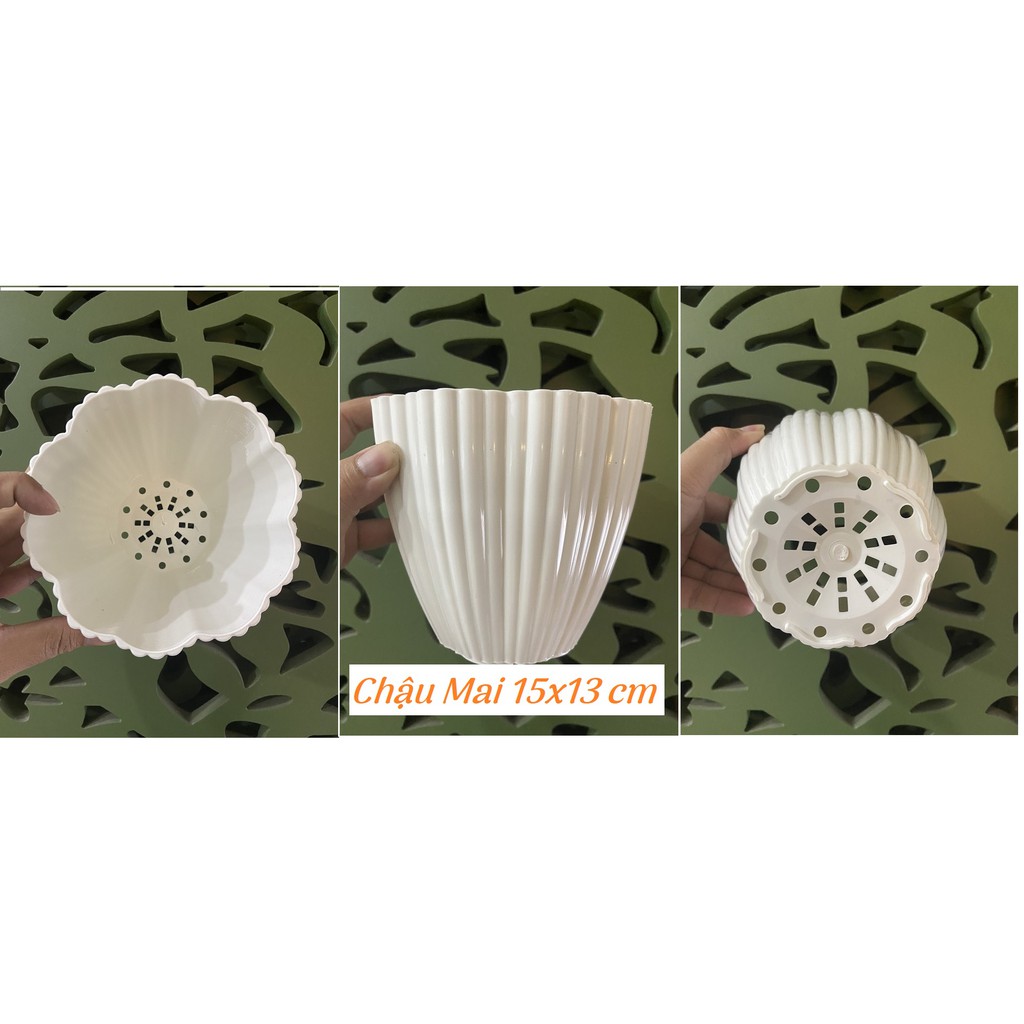 Chậu mai trắng nhựa cứng trồng hoa , xương rồng 15x13 cm !