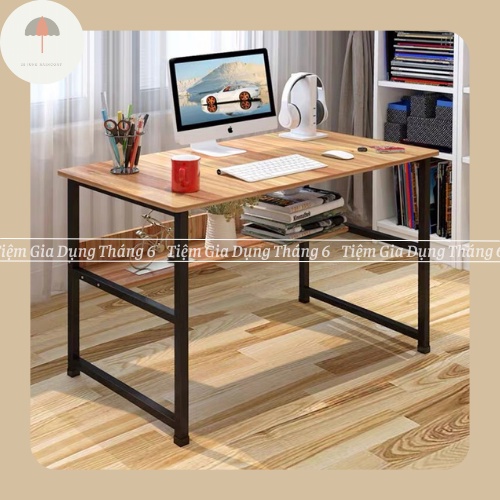 Bàn Làm Việc Có Kệ Lửng Miễn Ship Bàn Gỗ Khung Sắt Tiện Ích Gọn Nhẹ