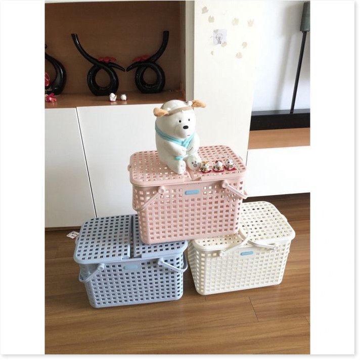 Giỏ có nắp, thuận tiện khi di chuyển mà đồ dùng vẫn gòn gàng, không bị rơi ra ngoài.
