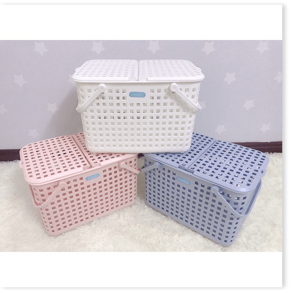 Giới thiệu Giỏ đựng đồ đi sinh bằng nhựa cao cấp quai giữa có nắp đậy NACHI INOCHI Nhật Bản