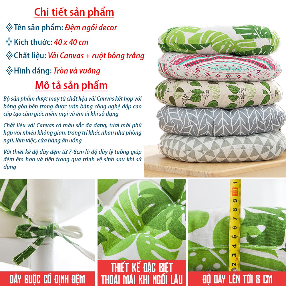 Nhà cửa & Đời sống > Nội thất > Đệm ngồi || Đệm ngồi bệt, Nệm ngồi vuông tròn lót ghế có dây buộcCòn hàng