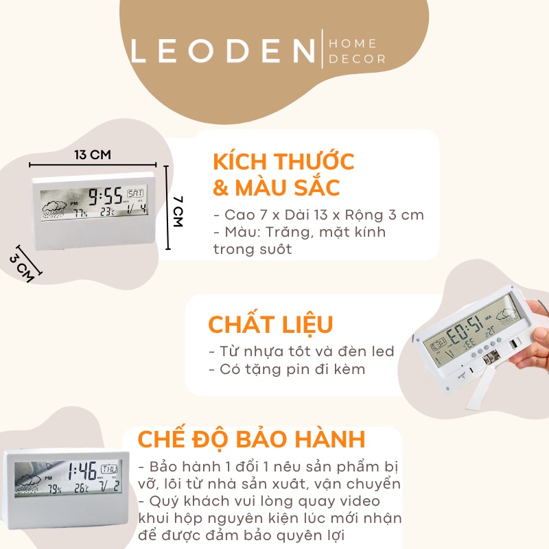 Giới thiệu [Mã LIFE20KALL giảm 10% đơn 50K] Đồng hồ led mini để bàn thông minh có báo thức, trang trí phòng ngủ - LEODEN Decor