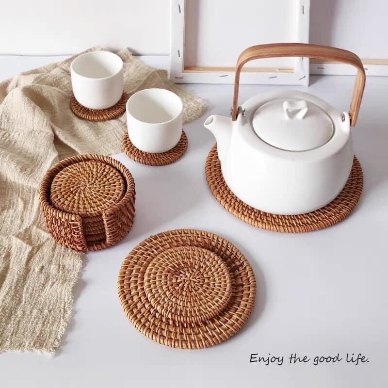 Nhà cửa & Đời sống > Bộ đồ bàn ăn > Khay, tấm lót bàn ăn || Đĩa mây/ Tấm lót mây dùng để decor bàn ăn, lót bình hoa, phụ kiện chụp ảnh VintageCòn hàng