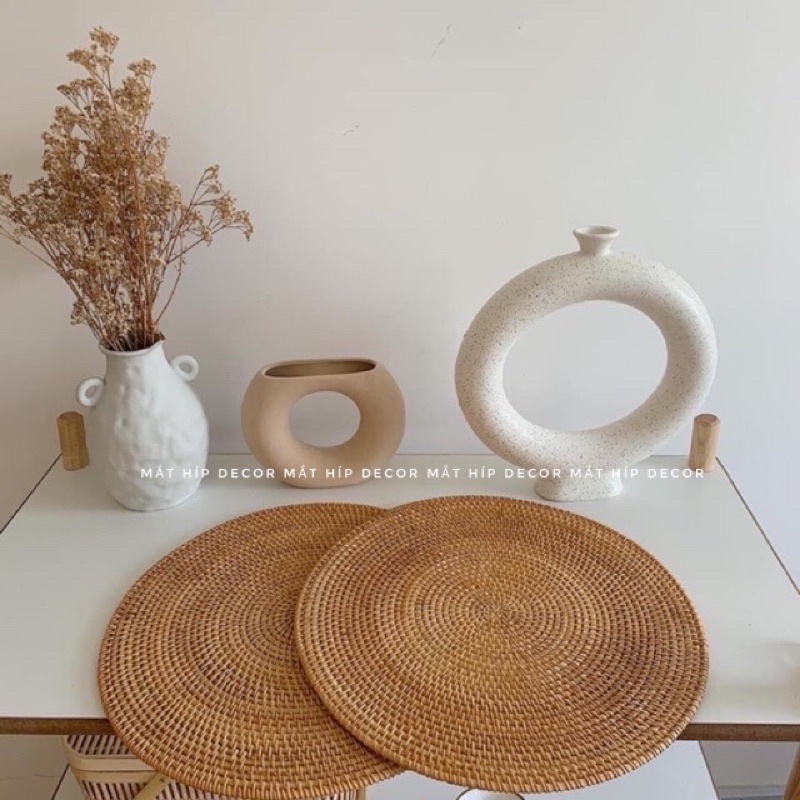 Đĩa mây/ Tấm lót mây dùng để decor bàn ăn, lót bình hoa, phụ kiện chụp ảnh Vintage