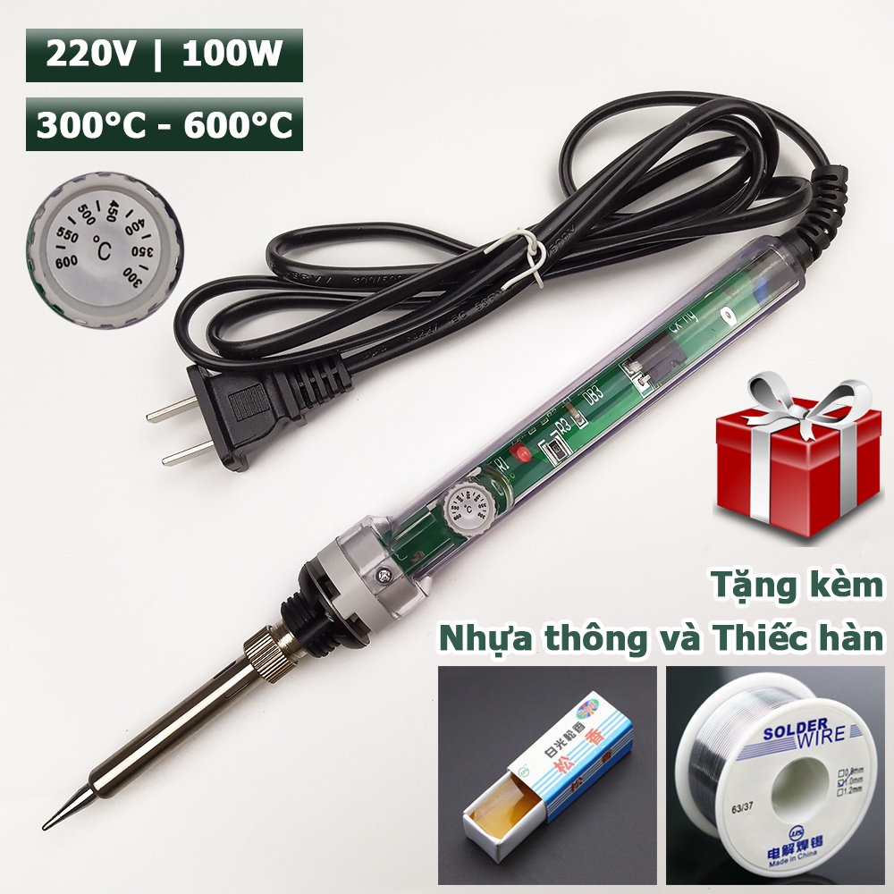 Mỏ hàn thiếc 100W có điều chỉnh nhiệt độ 907H tặng kèm thiếc hàn và nhựa thông