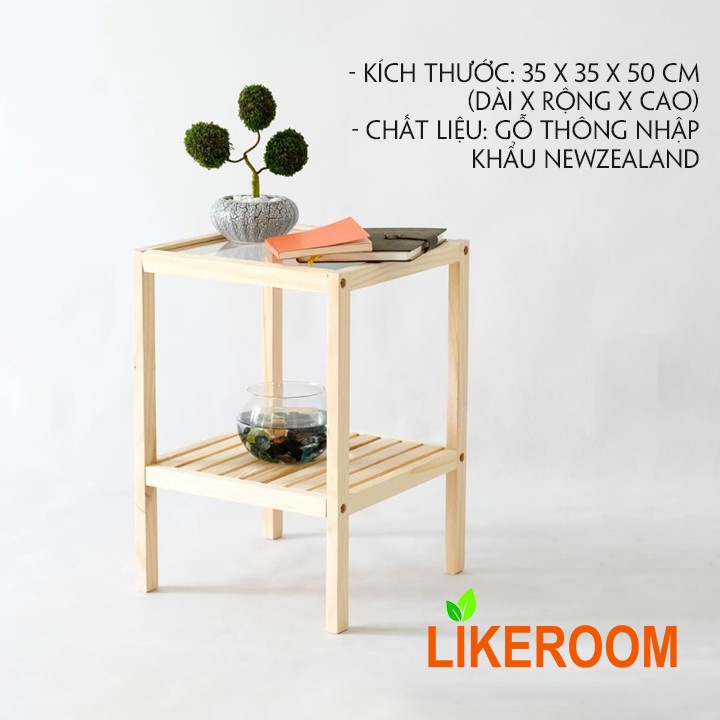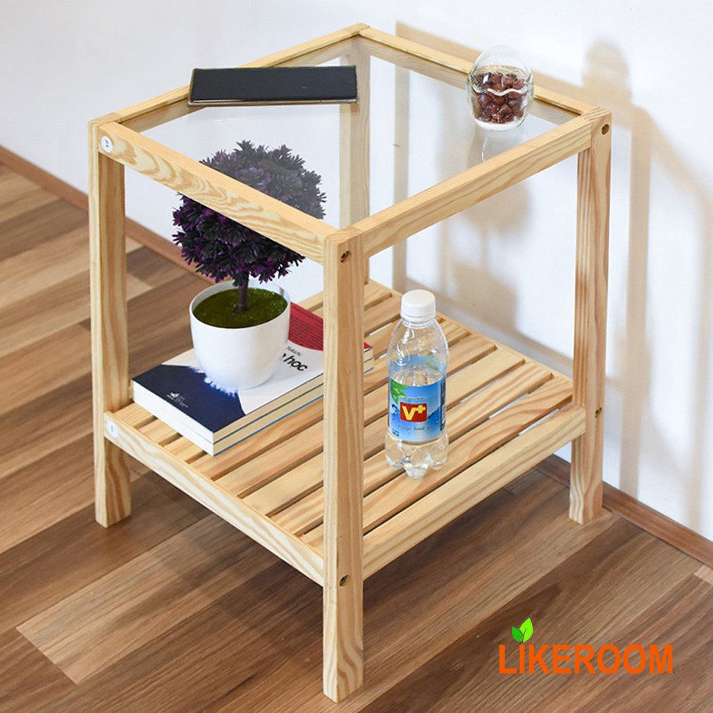 Nhà cửa & Đời sống > Nội thất > Kệ & Giá || Kệ Đầu Giường Gỗ Thông Hai Tầng Mặt Kính An ToànCòn hàng