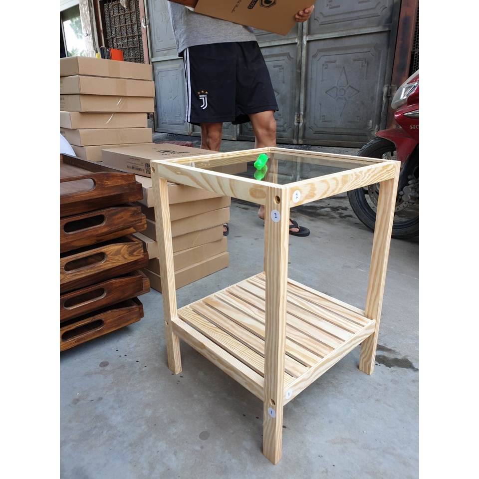 Giới thiệu Kệ Đầu Giường Gỗ Thông Hai Tầng Mặt Kính An Toàn