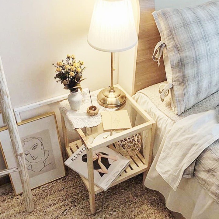 - Đa công dụng: kệ sách, để đèn ngủ, kệ trang trí lọ hoa, …