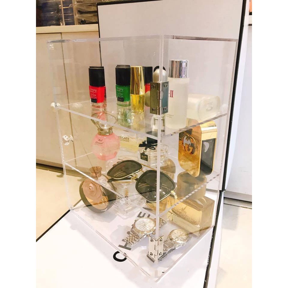 Giới thiệu Tủ mica trong có cửa đựng nước hoa mỹ phẩm trưng bày sản phẩm kích thước 26x15x34cm