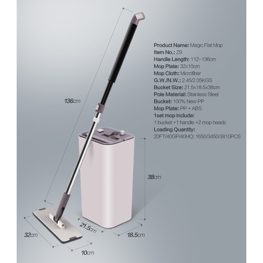 Bộ cây lau nhà là sản phẩm không thể thiếu trong mỗi gia đình, là công cụ hữu hiệu để hỗ trợ các bà nội trợ giữ gìn ngôi nhà của mình luôn sạch sẽ. Cây lau nhà thông minh giúp bạn tiết kiệm thời gian lau nhà vì bàn lau rất rộng, đầy đủ chức năng giặt vắt thông minh.