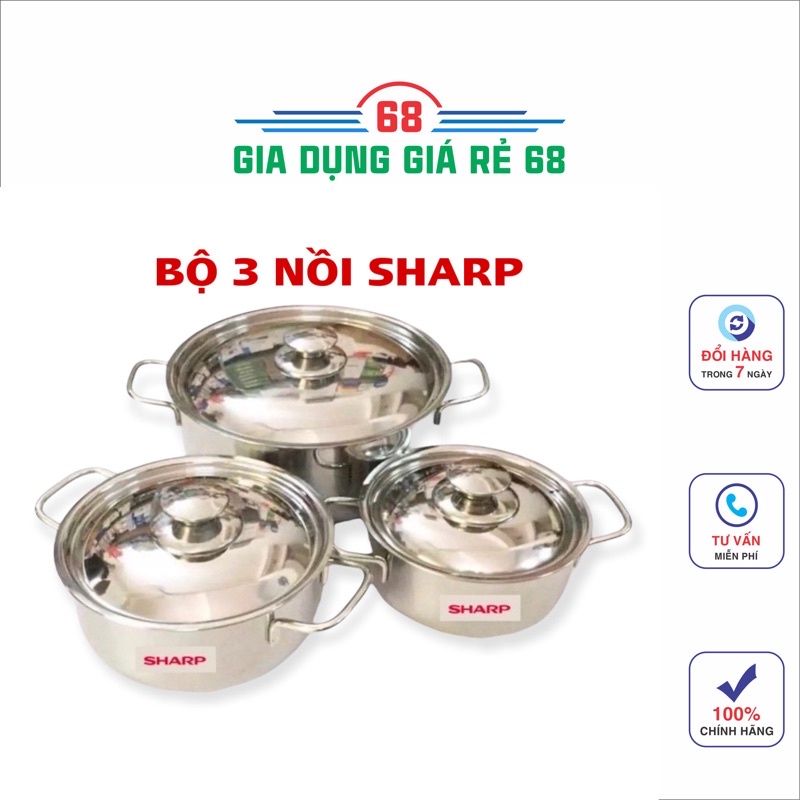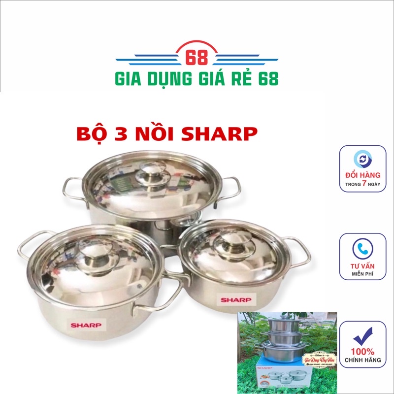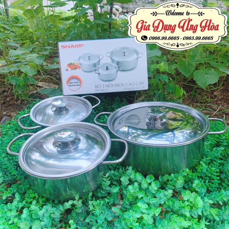 Bộ 3 nồi Inox Sharp về sẵn- Cửa Hàng: Gia Bảo