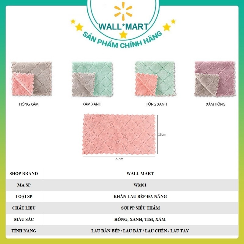 Giới thiệu Khăn Lau Bếp Đa Năng Siêu Thấm 2 Mặt Wallmart WM01