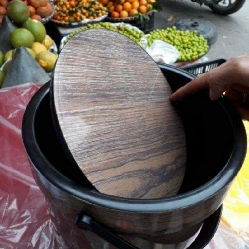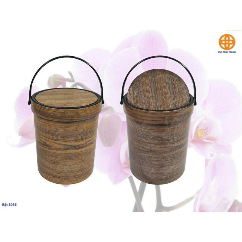 Thùng rác nắp lật giả vân gỗ nhựa Việt Nhật, Thùng rác để phòng khách, văn phòng sang trọng, lịch sựMàu sắc :Màu nâu gỗ
